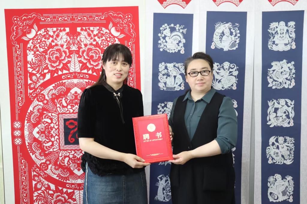 院徽剪纸赠情谊,薪火相传聘名师。精彩的剪纸体验活动后,举行了简朴而有意义的捐赠与聘任仪式。为支持学院文化建设,薛娜老师将精心创作的PP电子游戏网站院徽主题剪纸作品赠予学院。该作品尺寸达 120*120,巧妙地将传统剪纸艺术与学院特色融合,极具艺术价值与纪念意义。甘露露代表学院接受捐赠,并向薛娜老师致以诚挚谢意。随后,甘露露为薛娜老师颁发聘书,聘请其为学院“非遗文化传承导师”。甘露露在致辞中表示,此次聘任标志着学院与非遗传承人深度合作的良好开端,下一步,学院将定期邀请薛娜老师走进校园,开展系列非遗剪纸文化体验活动,引导青年学子在动手实践中体味非遗之美,感悟匠心之韵,真正做到“以美化人,寓教于乐”,让传统文化在青年群体中生根发芽。