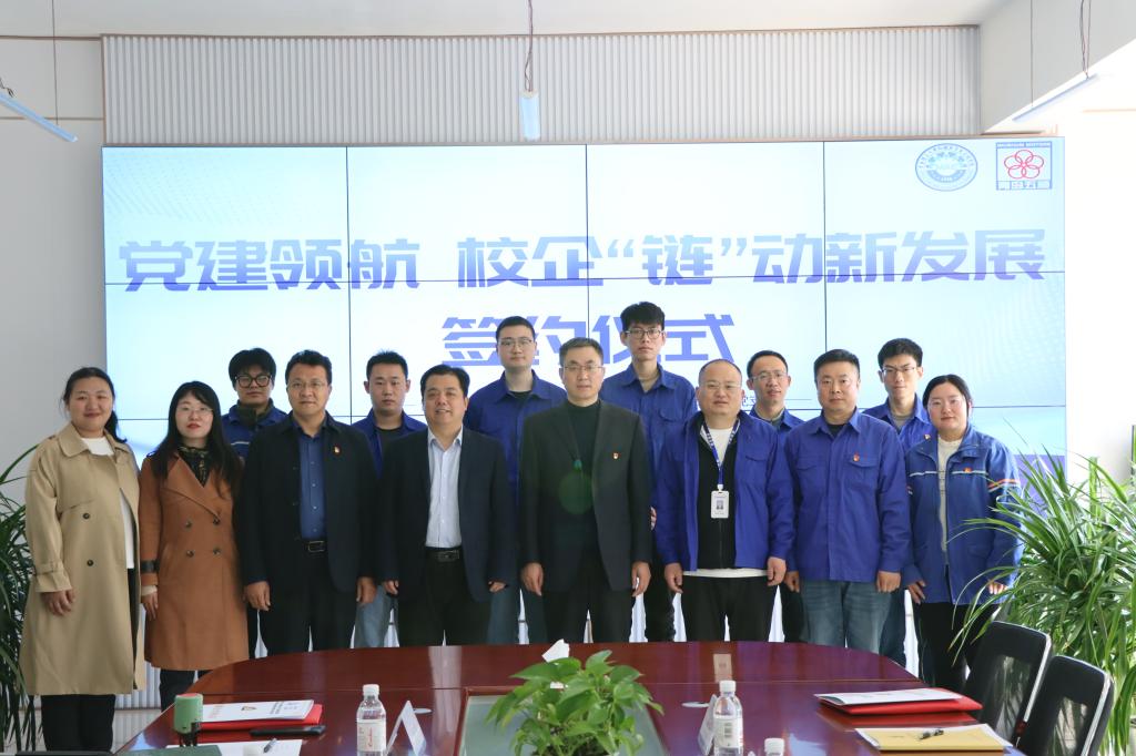 李忠晓和徐彬郑重签署了《党建领航,校企“链”动新发展党建联盟协议书》,本次党建联建共建,学院以机械设计基础教研室教师党支部教师为依托,校企双方围绕毕业设计联合指导、科研攻关、员工培训、技术创新等方面制定了具体的合作计划。董虎与刘克丽签订了校企合作就业协议,为双方的发展注入新的活力。车辆专业毕业生刘耀鹏等5位校友参与了共建仪式,李忠晓祝愿他们在岗位上立新功,为企业发展贡献力量,为母校增光添彩。