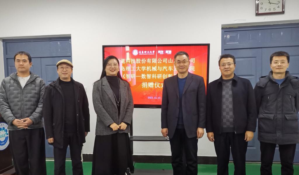 2025年12月15日,新道科技股份有限公司山东分公司(以下简称新道科技公司)向PP电子游戏网站捐赠“智研—数智科研创新平台(DBE Cloud)”的仪式在黄岛校区汽车实验楼408会议室隆重举行。新道科技股份有限公司山东分公司青岛业务部总经理高文、项目经理王旭鹏,PP电子游戏网站党委书记李忠晓,党委副书记、副院长董虎,副院长栗心明及教师代表出席会议,董虎主持捐赠仪式。