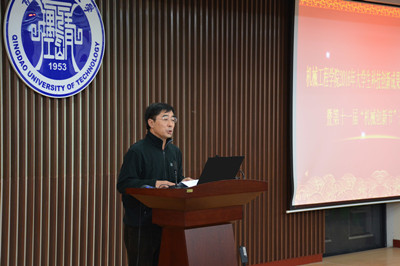 首先,学院谭继文院长回顾了学院近年来科技创新的历程,对于今年学院在科技创新方面取得的优异成绩给予工作总结。他表示学院将大学生创新创业活动作为教育教学的重要组成部分,积极克服各方面条件的限制,全力助推大学生创新创业,经过几年的努力和实践探索,建立了较完备的“创新创业人才培养政策制度驱动、创新创业赛事驱动、校内加工中心实验室驱动、校外企业实习驱动、科技项目转化驱动”的“五维驱动”机制,全力助推大学生创新创业,积极引导青年学生参加创新创业活动;同时,他还表示学院大学生科技成果的取得,离不开学校领导的关心和各部门的大力支持。