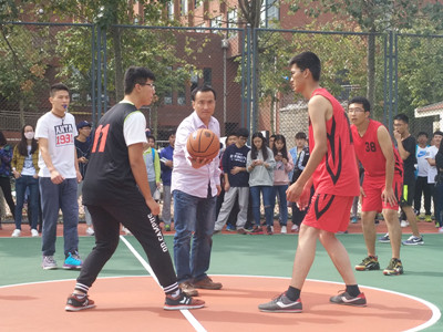9月29号中午12点30分,机械工程学院新生篮球赛在新校区篮球场开幕,党总支副书记李国涛老师,团总支书记贺治成老师和16级辅导员李淑云老师出席开幕式。