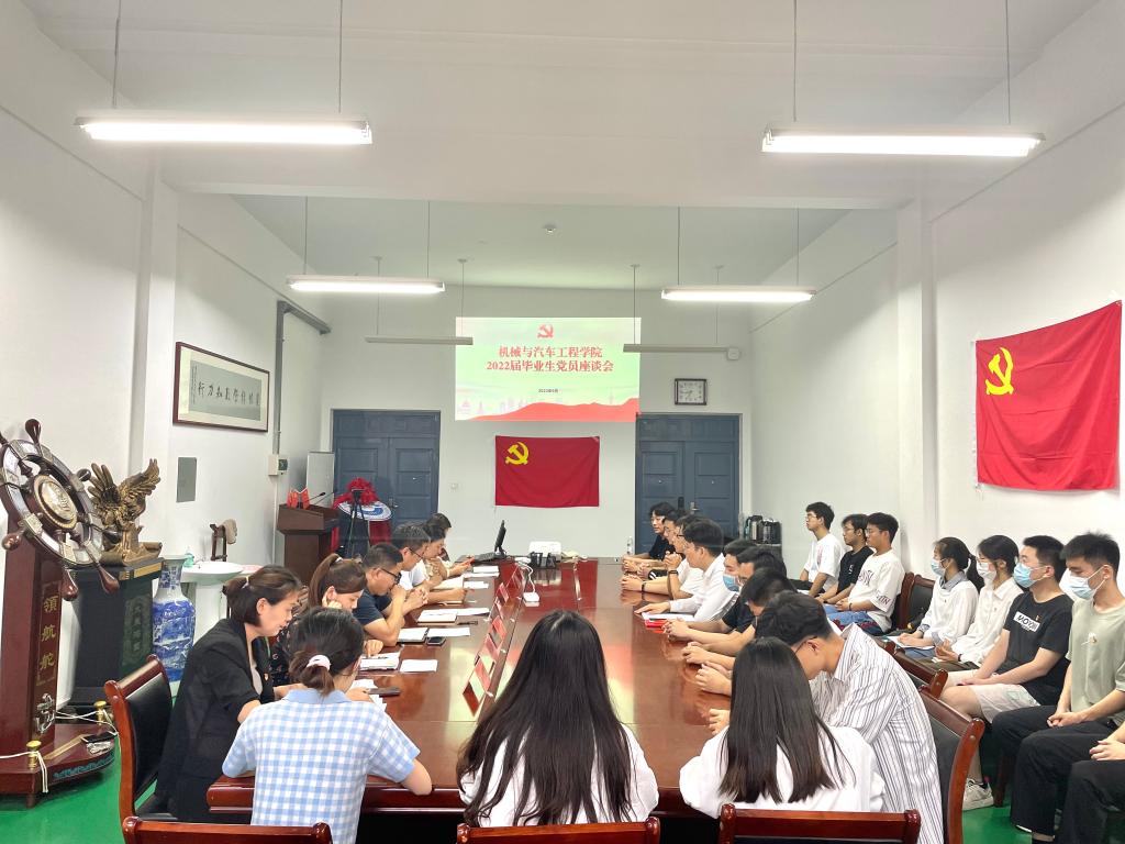 为加强毕业生党员思想政治教育,引导毕业生党员坚定理想信念,牢记党员使命,以良好的政治面貌开启人生新征程,PP电子游戏网站于6月16日晚在汽车实验楼408会议室组织开展2022届毕业生党员“最后一堂党课”暨党员座谈会。学院党委书记李忠晓、党委副书记董虎、学工办主任兼团委书记王成、毕业生辅导员、各党支部书记及2022届本科、研究生毕业生党员代表30余人参加会议。学院党委副书记董虎主持会议。