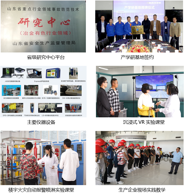 科学研究:近年来,本专业教师主持完成教育部产学合作协同育人项目、山东省教研教改项目等省级以上教研项目20余项,获山东省省级教学成果奖9项,获批山东省一流本科课程2门;主持完成国家自然科学基金项目、山东省自然基金项目等省级以上科研课题30余项,与企业合作、服务地方经济建设项目80余项,发表SCI、EI和中文核心期刊等科技论文200余篇,主编教材5部、出版学术专著5部。相关的研究成果已经在土木建筑、石油化工、能源开发、工业生产等领域得到了广泛的应用,获国家安全生产监督管理总局安全生产科技成果奖、山东省科技进步奖、中国职业安全健康协会科学技术奖等科研奖励20余项。