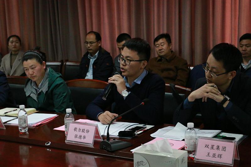 随后,会议进入企业专家及代表发言阶段,各专家及代表针对培养方案,围绕培养目标的合理性,专业培养的职业领域、职业定位、职业能力,毕业生应具备的素质和能力,课程体系的设置及其合理性等方面建言献策。佳友模具逄玉红总经理指出,随着产品质量要求增加,模具复杂程度日益增加,在机械设计制造方面用人要求也增加,本科专业课程需要冲破局限,设置更加尖端的塑料CAE分析及冲压有限元分析等课程;歌尔股份有限公司张德华经理在实践课程的安排方面提出个人建议,比如在歌尔建立创新就业实践基地,为学生设立为期3-5天的短期教学实践课程,了解企业文化,设置职业生涯规划等课程,将企业课题作为本科生毕业设计题目等;双星集团王亚辉经理建议设置质量管理、经济生产等选修课程;万宝压缩机谢宏伟经理提出,现在企业拥有许多国外客户,本科生与国外客户直接交流和沟通能力较弱,建议本科生加强对专业英语的学习;豪迈集团刘力玮经理提出通过设置“工程师进校园”等形式的讲座,使学校与企业两方紧密合作从而实现本科生的培养目标。其他企业代表也纷纷发言,提出较有建设性的意见。