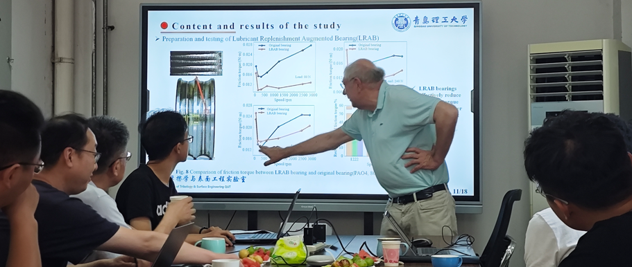 报告会上,郭峰对高德·珀尔教授一行的来访表示热烈欢迎,高度评价了他的学术成就,并向高德·珀尔教授介绍了PP电子游戏网站基本情况和摩擦学与表面工程实验室的发展概况。高德·珀尔教授对学院的热情接待表示感谢,随后,结合风电大型轴系中滚动接触与平行滑动的发展现状进行了专题报告,系统介绍了国际轴承企业“以滑代滚”的典型应用方法,重点阐述了从小轴系到大轴系的接触与润滑中亟需突破的难点问题。报告会激发了与会师生的浓烈兴趣,提问互动环节气氛十分热烈。