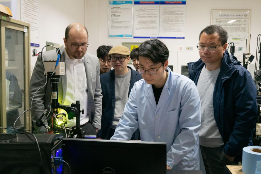 近日,世界著名轴承公司舍弗勒集团滚动轴承研发部轴承技术专家Philipp Rödel,舍弗勒贸易(上海)有限公司研发部马子魁博士、黄运生博士一行到访PP电子摩擦学与表面工程实验室。PP电子游戏网站院长郭峰教授、部分青年教师代表陪同参观交流。
