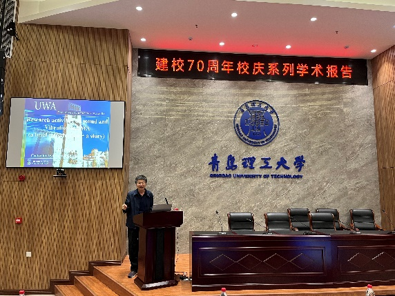 同时,潘杰教授以声学领域知识为中心,向大家介绍了西澳大学的声学教学和研究情况。他首先向大家介绍了“西澳大学”的学校概况,并讲述了学校的声学实验室的研究现状及重点方向。接着,他以一个项目的研究过程为例,向大家分享了一个完整且严谨的解题思路,即观察信号分析原理联想方法完成目标。