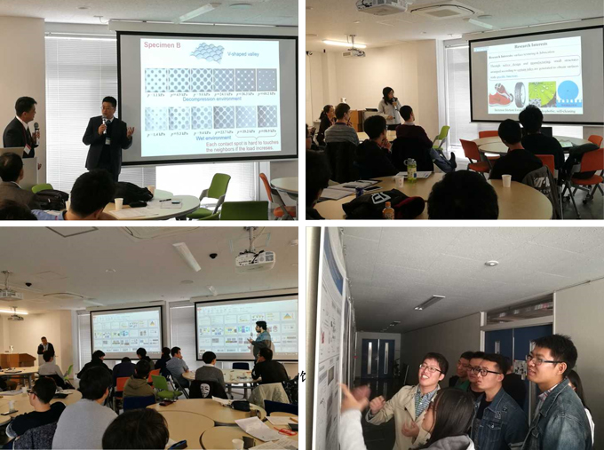 在此次交流活动中,双方举办了“Surface Functions Brought by Surface Nano/microstructures”的研讨会,PP电子PP电子游戏网站郭峰教授、崔金磊副教授、车清论博士、柏林清博士和九州工业大学的松田健次、山村方人、James cannon三位教授分别做了精彩的学术报告,重点介绍了各自的特色研究和成果。同时,双方研究生以展板形式展示各自研究,现场进行了热烈的讨论,交流一度被推向高潮。参加报告交流的学者和学生多达80人次。会议期间,参观了该校的空间卫星实验室、摩擦研究中心实验室和热工程实验室,并进行了相关实验工作。