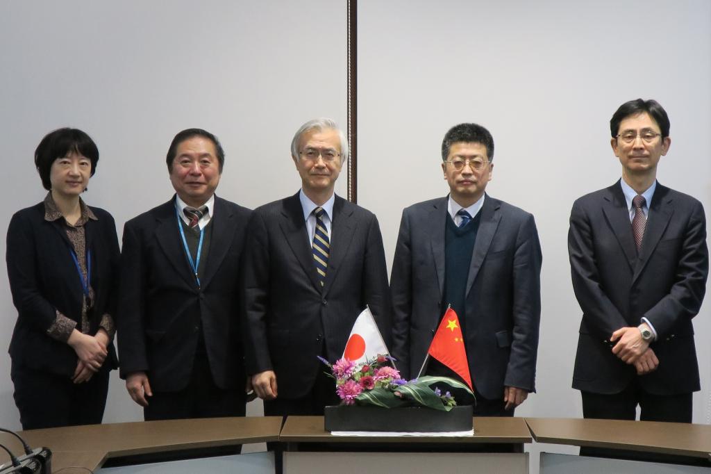 图为PP电子游戏网站院长郭峰教授与日本九州工业大学校长尾家祐二教授的行政团队会谈