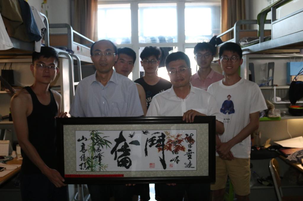 温馨送别,深情寄语。6月25日晚,学院举办以“时光荏苒,筑梦未来”为主题的毕业生晚会,渲染了离校的氛围。令人捧腹的相声、引人深思的小品、青春洋溢的舞蹈,饱含深情的朗诵,独具特色的沙画表演,校友张鸿宇带来的原创歌曲《青岛理工》以及由2018届毕业生共同演唱的歌曲《不说再见》等,为毕业生留下了难忘的一晚。郭峰院长在晚会中表达了对毕业生的美好祝福,希望毕业生常回母校看看,并对毕业生提出了做一个守住自己本分的人、 做一个努力进取的人、做一个学会感恩的人、做一个善良和助人的人四点希望。6月27日,我院与高等职业学院在嘉陵江路校区共同举办了“心系理工 植梦未来”植树活动,学校领导、老师与我院毕业生代表共同种下感恩树,为广大毕业生在校园内留下永恒记忆点,留下一份对美好理工生活的纪念。活动前,毕业生提前将自己心愿和祝福写在一张张信笺上,装进心愿瓶,将其密封后埋在感恩树下,相约十年后再回母校开启心愿瓶。6月29日下午,学院院长郭峰、副院长杨勇、王优强、副书记林海涛、团总支书记隋学智及毕业生班辅导员徐卫晓、丁于娟一行人走访毕业生宿舍,为毕业生送去关怀和祝福。走访期间,领导老师们与毕业生亲切的交流,询问就业情况、行李寄存以及未来规划等,并嘱咐学生务必将贵重物品带好,妥善保存相关证书和财务,注意行程安全等,并祝福毕业生前程似锦。毕业生代表在宿舍里向学院赠送自己制作的一幅绣有“奋斗”字眼的十字绣,以此表达了想要同学院共同进步的愿望,愿学院的明天会更美好。