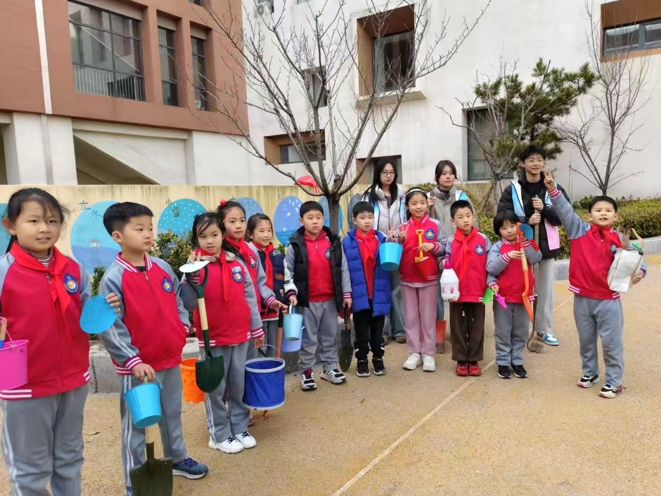 双向赋能深化育人实效。学院学生会执行主席伏蕊表示:“这场'青马-红领巾'成长对话,既是劳动教育的生动实践,更是时代新人的精神接力。希望我们既能如新苗般向下扎根,厚植'制造强国'的理想信念于中华文明的沃土;又能向上生长,以创新驱动发展的年轮镌刻奋斗足迹,成长为支撑中国智造的参天栋梁!”衡山路小学二年级学生耿玉东在采访中说道:"原来给小树松土浇水就像守护地球妈妈!今天我不仅学到绿色环保知识,还亲自种下一棵棵小树苗,等我们长大了,也要像青马哥哥姐姐们一样,把绿色种子播进更多小朋友的心田!"
