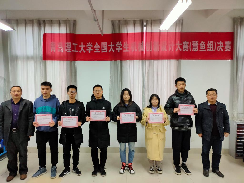 下午四点举行了颁奖典礼。本次大赛中共设有5个一等奖,6个二等奖和11个三等奖。学院许桢老师对此次大赛进行总结。这次校赛的规模,在慧鱼实验室成立以来的历史上是空前的,是飞跃式的。不算9月份开始的慧鱼体验活动和培训课程,仅从11月中旬到现在,就有40个小组,大约200名同学在这里参加慧鱼创新设计。能够举办这么大规模的校赛,与学校职能部门和学院给我们的巨大支持是分不开的。北京中教仪科技有限公司总经理孙晓飞老师对本次决赛答辩及颁奖典礼做出总结并致辞,孙经理强调作为参加全国大赛前的预热和选拔赛事,青岛理工大学上下动员,凝心聚力。精心组织,周密部署,各项工作有条不紊,井然有序,切实做到了到位,有力,精益求精。参赛同学全情投入,积极备赛。现场呈现出来的是创意十足,制作精巧,凝聚了心血和智慧的力作!作品不落窠臼,体现了求新,求变的创新精神。体现了青岛理工人扎实,优秀,严谨的学术风气。最后他对同学们的慧鱼模型表示肯定并且在更高的层次上对同学们的模型进行了分析提出了相应的意见。