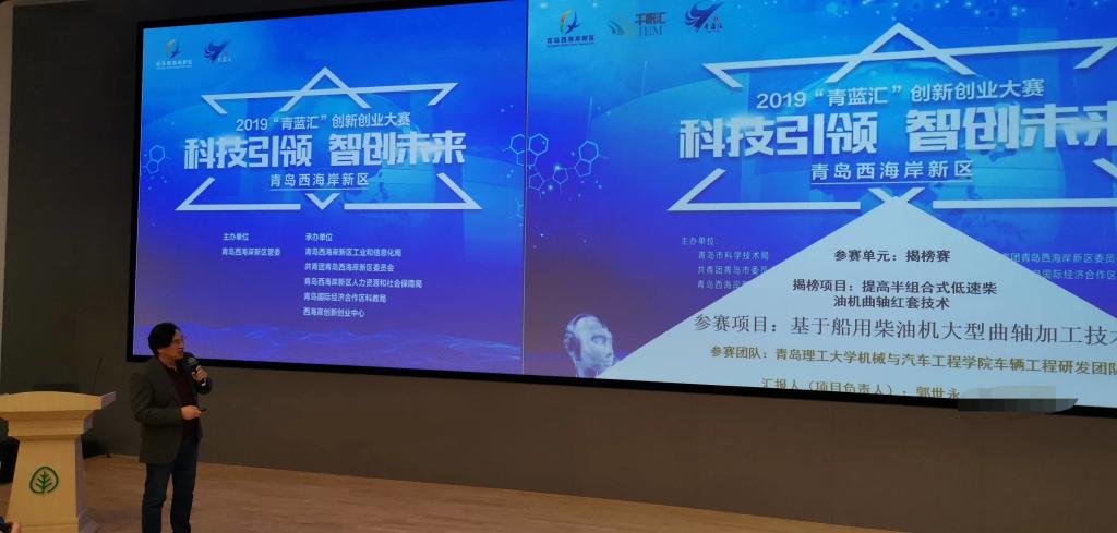 2019年12月24日青岛西海岸新区2019年“青蓝汇”创新创业大赛在青岛国际经济合作区(中德生态园)被动房技术体验中心圆满收官。PP电子PP电子游戏网站车辆工程研发团队参赛项目《基于船用柴油机大型曲轴加工技术》荣获获一等奖。本次进入揭榜赛决赛的两只队伍分别是PP电子PP电子游戏网站团队和青岛科技大学机电工程学院团队。