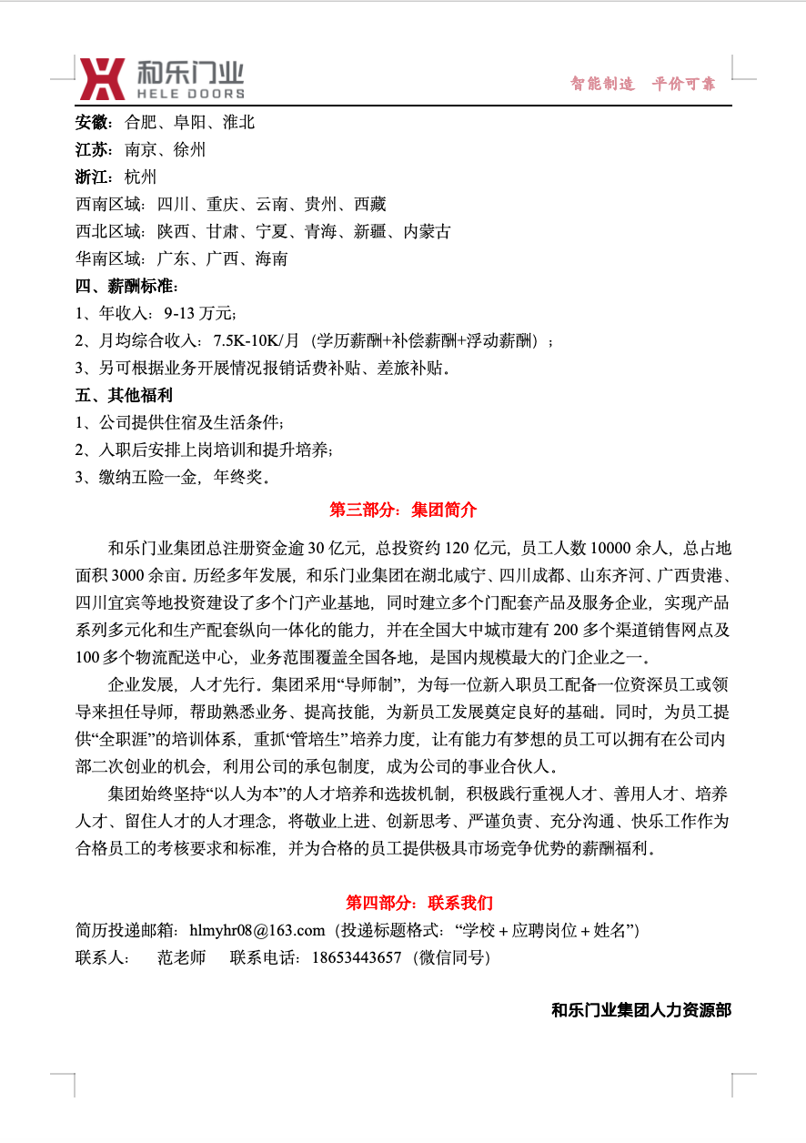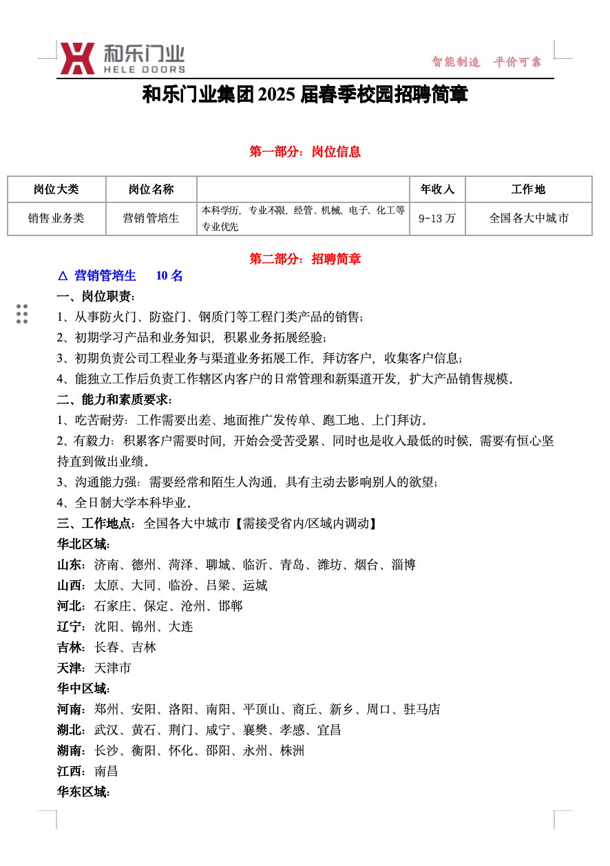 和乐门业集团2025届春季校园招聘简章