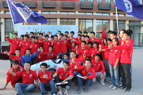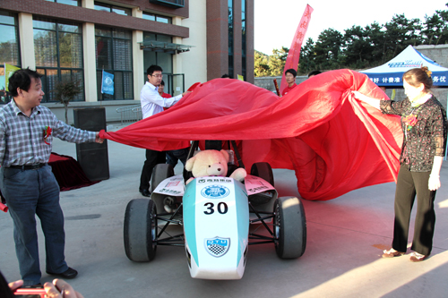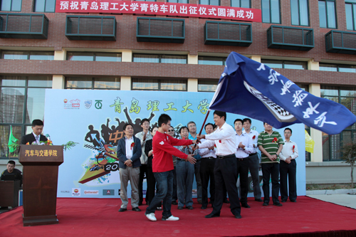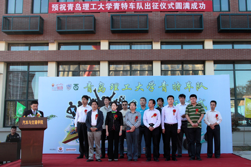 10月11日下午,青岛理工大学青特车队出征仪式在汽车与交通实验中心小广场举行。仪式上,由青岛理工大学在校大学生自行设计制造的方程式赛车QTU-02正式亮相并试跑成功。