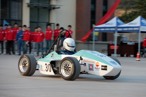 青特车队指导老师邹旭东、队长何建勇分别发言。仪式后,车队同学们进行了赛车动态展示及静态项目现场汇报。