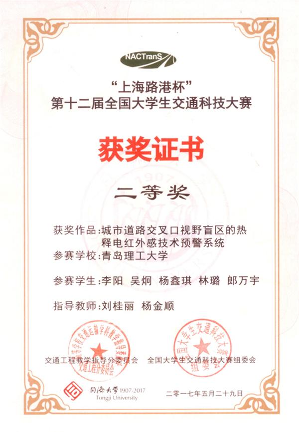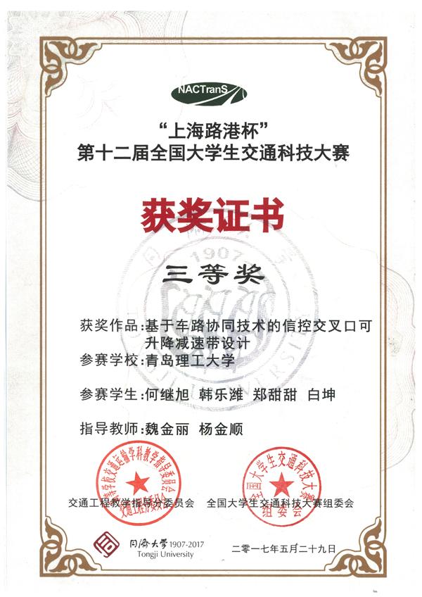 5月29日,第十二届全国大学生交通科技大赛在同济大学落下帷幕。我院推荐的作品获得二等奖两项,三等奖一项。
