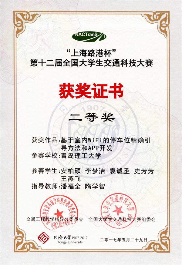 本届大赛共有全国120所高校报名,在初赛作品报送阶段,共有95所高校提交了302件作品;经过专家组匿名通讯评审,目前有来自51所高校的80件作品通过选拔进入决赛,PP电子三份作品进入决赛。参赛作品《基于室内wifi的停车位精确引导与APP开发》》(作者:安柏硕、王燕飞、李梦洁、袁诚丞、史芳芳 指导老师:潘福全 隋学智)及《城市道路交叉口视野盲区的热释电红外感技术预警系统》(作者:李阳 吴炯 杨鑫琪 林璐 郎万宇 指导老师:刘桂丽 杨金顺)在决赛中均取得了二等奖的优异成绩;《基于车路协同的信控交叉口可升降减速带设计》(作者:郑甜甜、何继旭、白坤、韩乐潍 指导老师:魏金丽 杨金顺)获得三等奖。