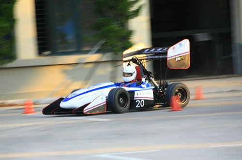 汽车学院党总支副书记李洪民宣布发布会正式开始。杨向荣在致辞中肯定了车队队员的努力成果,勉励大家勤勉学习,肩负起祖国汽车行业发展的重任,对汽车学院莘莘学子寄予厚望。随后车队冠名商企业代表致辞,表达了对车队发展的关注与支持。指导老师皱旭东和车队队长陈继檬分别对赛车设计、结构参数和车队组织结构做了介绍。车队向来宾做了赛车简短跑动和静态答辩展示。