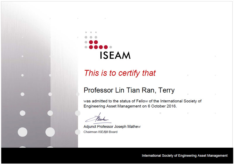 我院泰山学者林天然教授于2016年10月10日收到国际工程资产管理学会(ISEAM)聘书,被聘为国际工程资产管理学会院士(Fellow)。