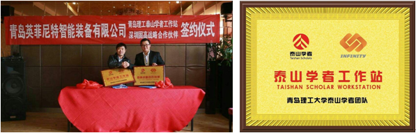 2016年3月12日,青岛理工大学机械工程学院泰山学者孙树峰教授及其泰山学者团队一行8人与青岛英菲尼特智能装备有限公司在青岛市城阳区举行“校企合作签约仪式”。