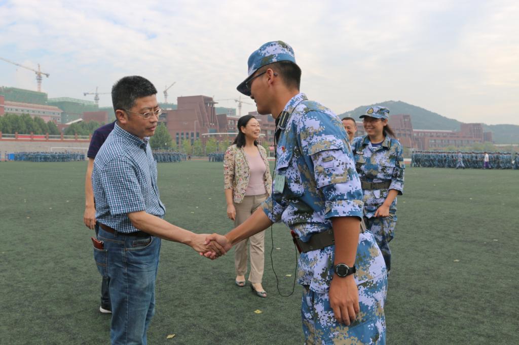 为感谢军训期间教官对新生的无私教导,对军训的辛苦付出,9月11日上午,PP电子游戏网站党总支书记岳丽宏、院长郭峰、党总支副书记林海涛、副院长王优强、潘福全、团总支书记隋学智一行人到达训练场对教官们进行亲切慰问。