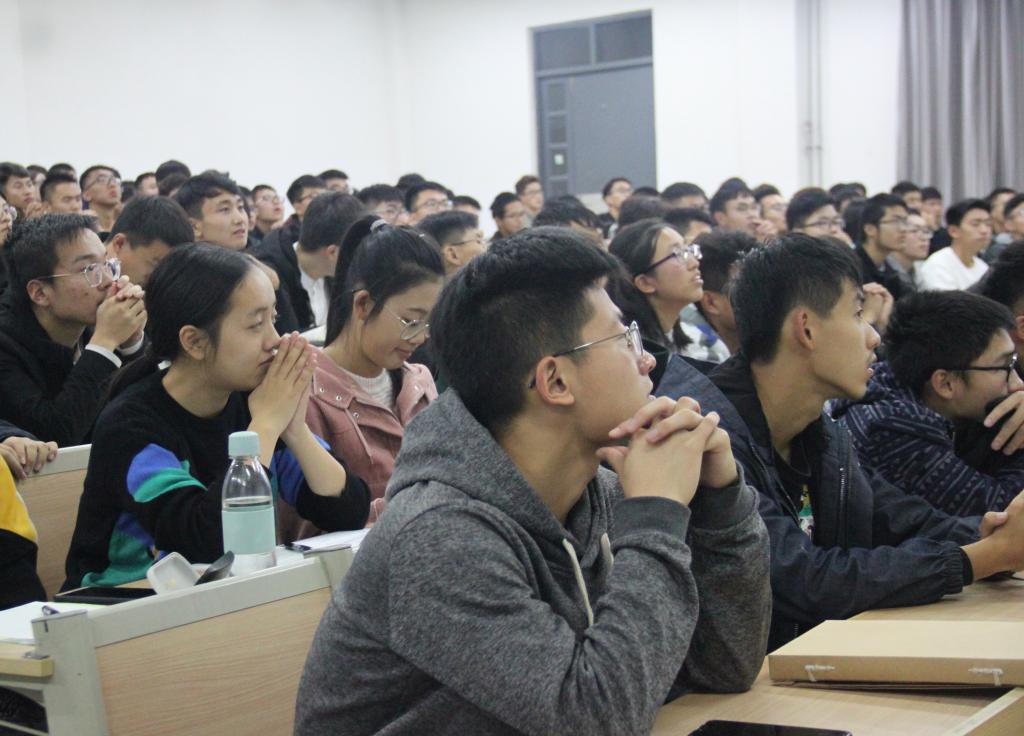 分享会上,我院四位2018年国家奖学金获得者张思如、蔡文通、张钟予、刘林林依次上台,分别从专业学习、科技创新、社会实践及时间管理等方面详细介绍了他们的成长经历和个人感悟。四位国奖学子结合个人经历,通过PPT的形式,展现了他们的成长信念、学习历程、学习方法及实践经验等,富有激情的演讲感染了在场的大一新生。交流互动环节,新生们表现踊跃,积极提问,与国奖获得者进行了深入的互动和交流,通过分享交流,大家表示受益匪浅。