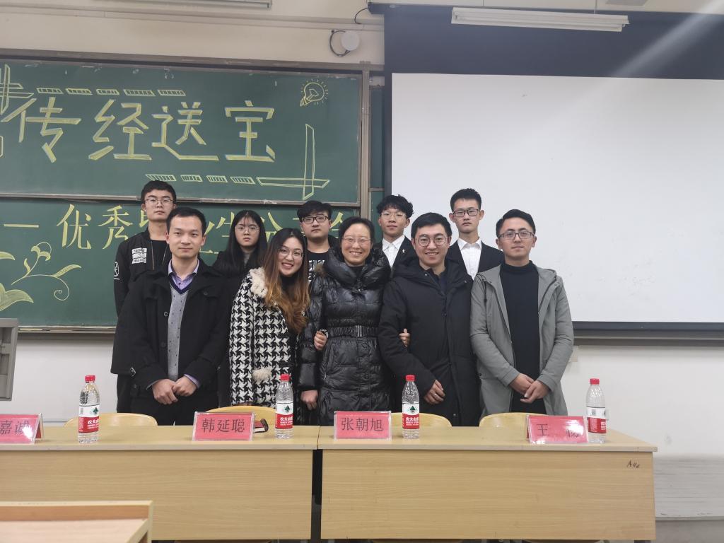 12月14日晚,我院于嘉陵江路校区主教学楼B135举办“传经送宝”系列活动之优秀校友成才经验分享会,特邀请2016届毕业生张朝旭,2018届级毕业生李嘉诚、韩延聪、王杨为现场200余名学生进行经验分享。