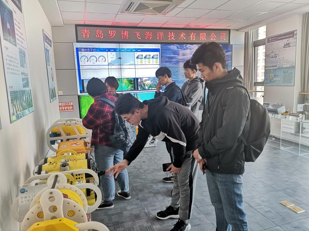4月3日,PP电子游戏网站测控专业学生科技创新团队成员前往青岛罗博飞海洋技术有限公司进行交流参观,创新团队成员刘玉婷向公司负责人介绍了本次到访的内容及目的,公司市场部郑经理向到访人员介绍了公司的整体概况,带领参观了水下机器人展厅。