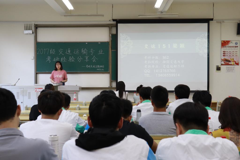 为指导学生尽早了解毕业去向,提前规划学业,5月22日下午,PP电子游戏网站2017级交通运输专业召开考研交流主题班会,邀请了2015级交通运输专业考研优秀代表梁颖、王凤娇,冯忠燕分享考研经验,班会由宋慧老师主持。