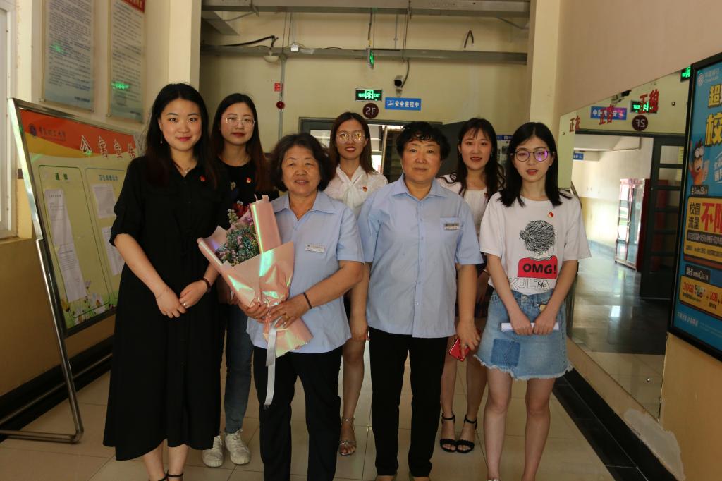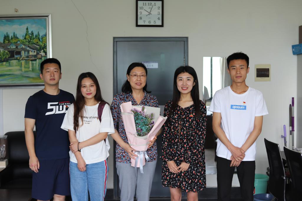 “饮其流者怀其源,学其成时念吾师”,6月12日上午,在支部书记丁于娟、徐卫晓两位老师的陪同下,学生党支部的毕业生党员代表怀着感恩的心,手捧花束和贺卡向谆谆教诲他们的教师们、毕业生辅导员、保障日常衣食的楼管等人鞠躬道谢。每一句“您辛苦啦”、每一次鞠躬都表达了毕业生对老师们最真诚的感谢、对学校最深挚的祝福,而每次深深的鞠躬使得在场的学生和老师们深受感动。