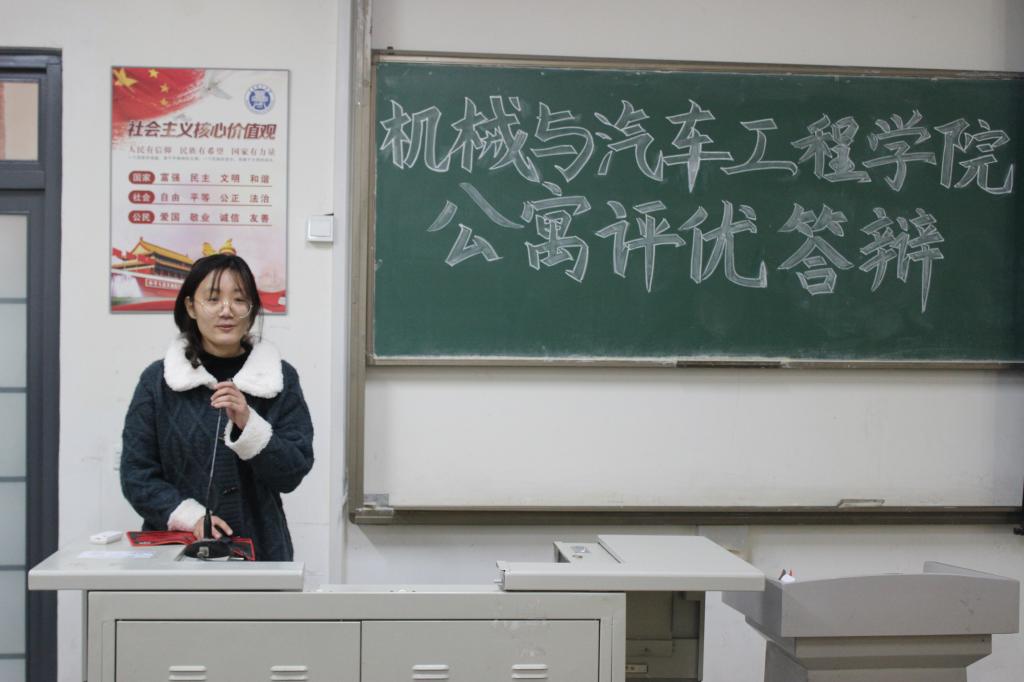 公寓评优答辩会主要分为十佳文明宿舍、十佳学风宿舍两个部分。在十佳文明宿舍答辩环节中,各公寓成员代表通过PPT的方式,从宿舍成员、宿舍卫生、宿舍特色活动开展等方面进行展示,充分展现了宿舍成员积极进取、温馨友爱的宿舍氛围;在十佳学风宿舍答辩环节,各公寓成员代表以学风建设为中心,从学习成绩、科技创新、实践活动等方面进行展示,以点带面,充分展现了宿舍成员勤奋好学、勇于拼搏的良好舍风。答辩中既有共同钻研学问的奋斗历程,又有一起运动娱乐的轻松画面,他们既各有所长,又互相帮助,一起努力、共同进步。随后,辅导员吴静作了简要总结,她认为,与其说这次活动是一次公寓评优大会,不如说是一次互相学习的研讨会,各宿舍竞相比武,在分享中找差距,在交流中共成长。希望更多宿舍参与到分享交流中来,讲述属于自己的公寓故事。