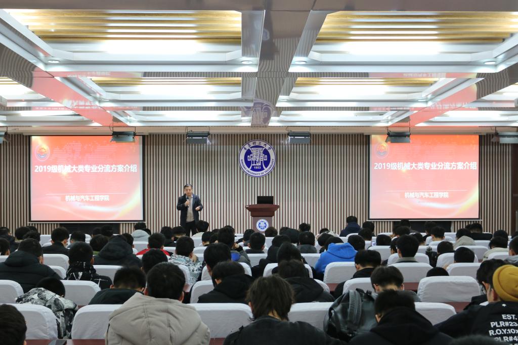 12月27日上午,PP电子游戏网站2019级机械类专业分流方案介绍会在嘉陵江路主教学楼一楼、二楼东报告厅举行,学院副院长杨勇、车辆教研室主任郭世永、材料教研室主任王进、汽服教研室主任尹浩及2019级机械类专业全体学生参加会议,会议由杨勇主持。