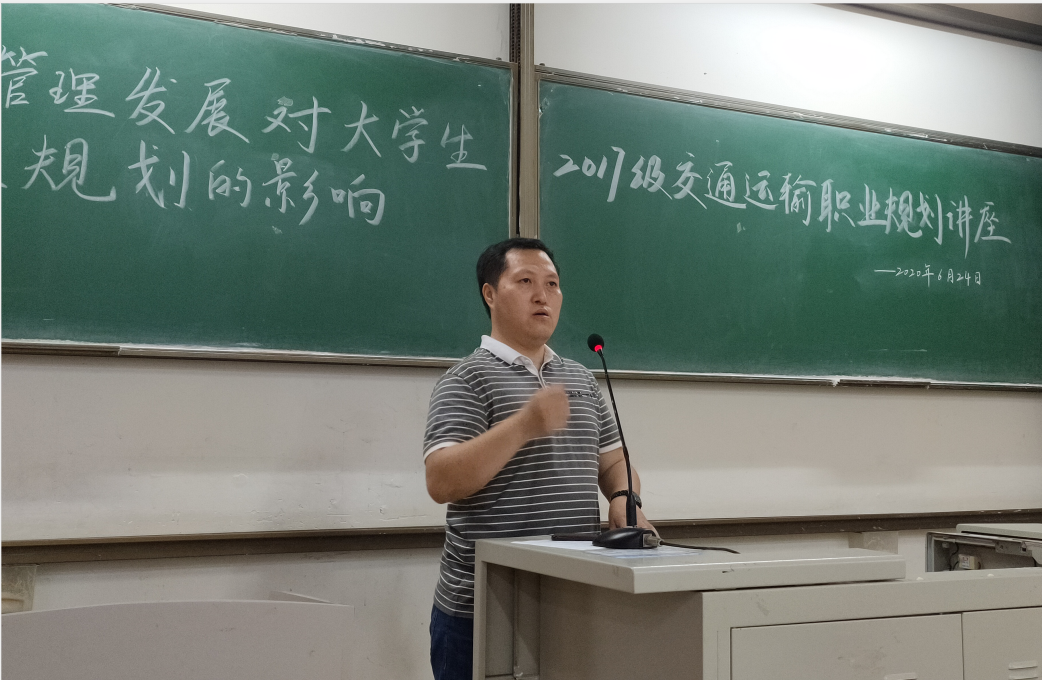 宋慧提前安排学生戴好口罩在教室里间隔而坐并致欢迎词,为学生简单介绍了今年在疫情大环境下就业状况的严峻性,“人无远虑,必有近忧”,她告诫学生一定要提早准备,以应对就业压力。康国祥对交通运输专业的就业形势做详细分析,他指出,今年就业形势明显不如往年,但考研率较高,这也使准备考研的同学信心倍增,17级的同学们马上步入大四,很快就要面临就业、考研、考公务员或者出国,康国祥建议学生要积极的寻求机会,主动应变,要对自己未来的职业做好规划,并且付诸行动。
