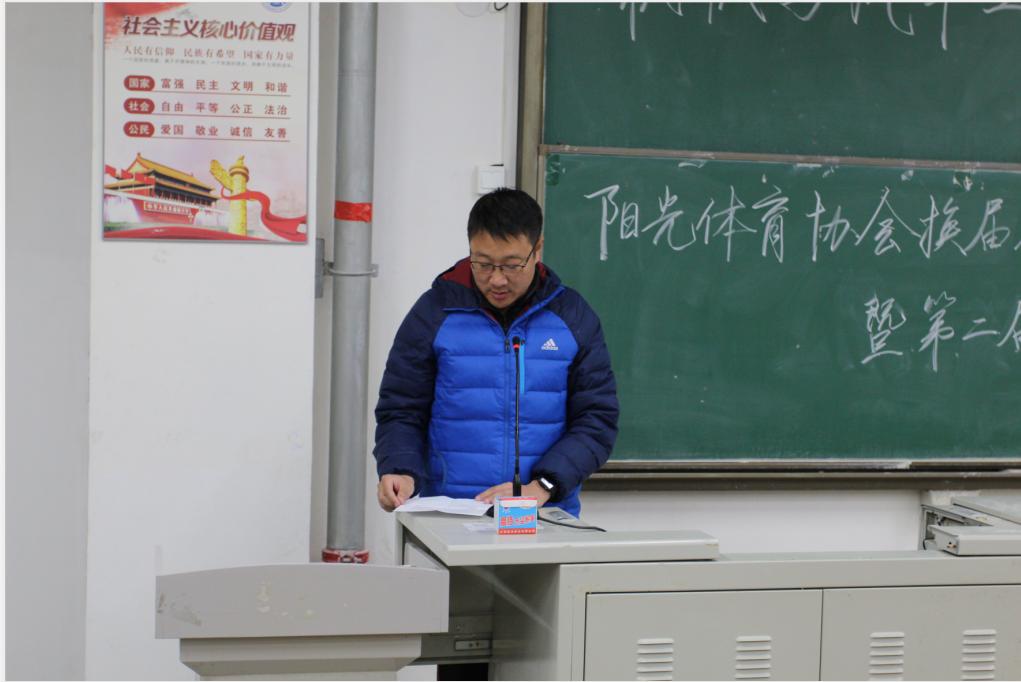 12月27日中午,PP电子游戏网站阳光体育协会换届大会暨协会第二届成立大会于嘉陵江路校区主教学楼B135如期举行。体育教学部指导老师代滨、张琦、谭文龙,PP电子游戏网站2020级辅导员陈锦子出席本次会议,协会全体成员参加会议。