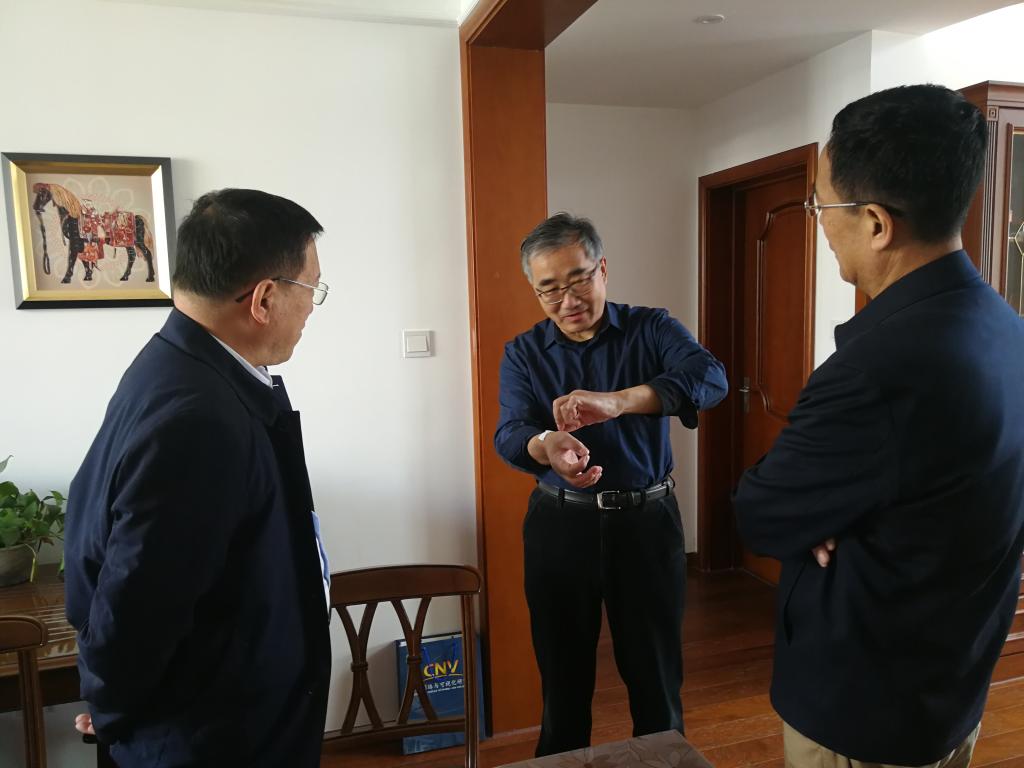 谭秀森一行来到赵正旭教授家中,详细询问了其工作和生活状况以及实验室建设改造情况,认真听取对学校发展的意见和建议。希望赵正旭教授围绕服务国家重大战略工程,深入推进“优势学科+”,充分发挥自身的优势,积极创建省级协同创新中心,引领打造支撑新旧动能转换的学科群,再攀科学高峰。赵正旭对学校领导的关心表示感谢,表示今后将以助力学校高质量发展为愿景,扎实做好科研工作,积极服务国家重大发展战略需求和地方经济发展需要。