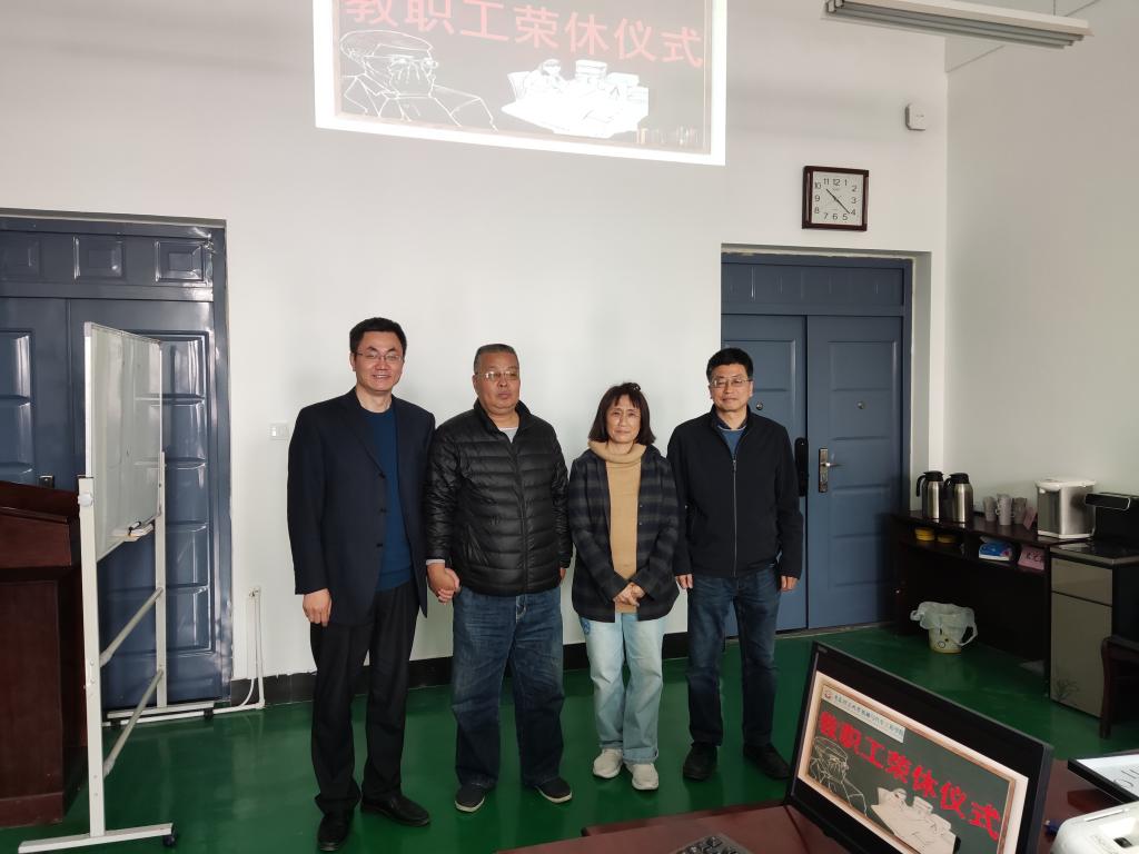 芳菲四月,如诗如画,在这温暖的季节里,PP电子游戏网站教职工欢聚一堂,以最真挚的情谊欢送王文、杨国海两位老师光荣退休,学院党委书记李忠晓、院长郭峰、工会代表、相关科室教职工参加荣休仪式。
