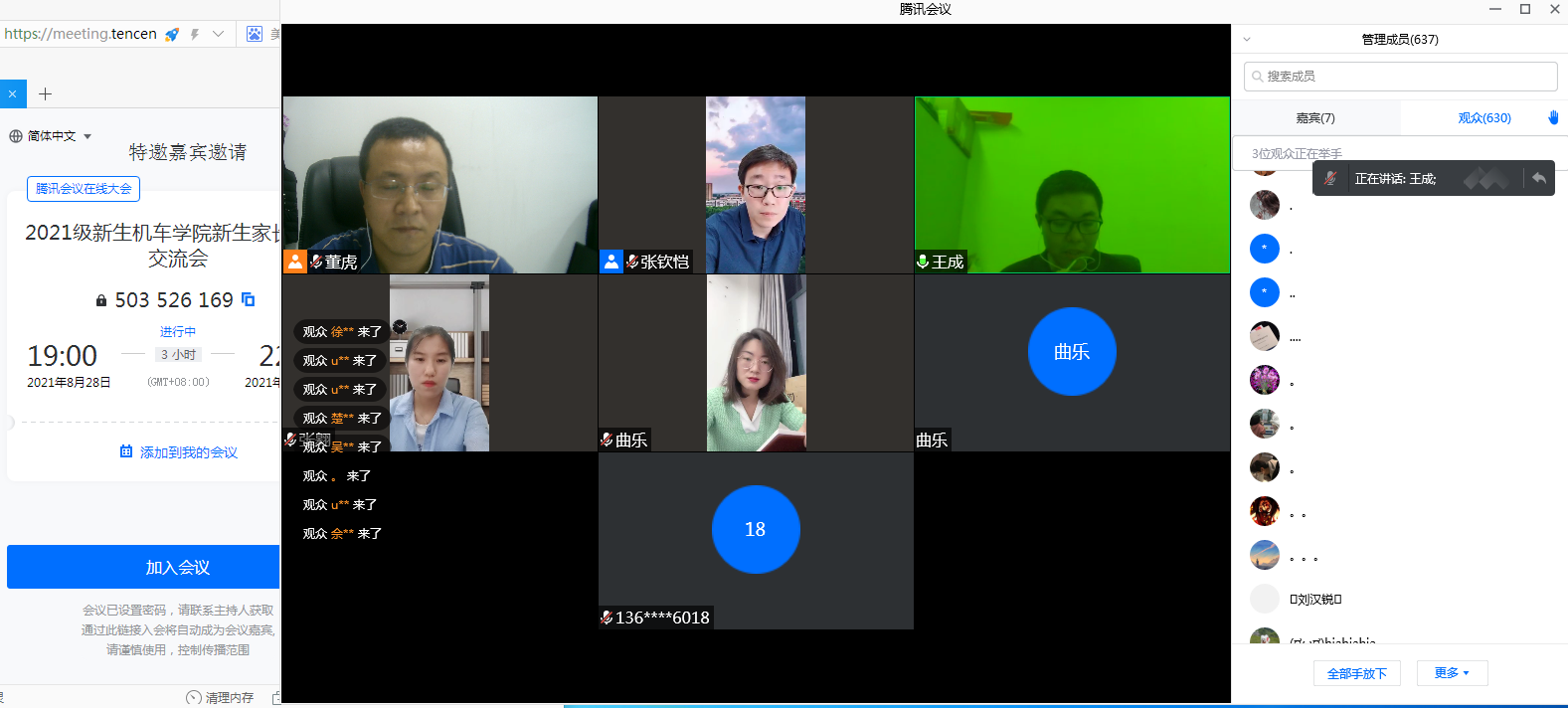 为拓宽家校联动渠道,增强育人合力,加深2021级新生家长对校情院情、人才培养、教育教学、疫情防控等工作的了解,8月28日晚,PP电子游戏网站一场老师与2021级新生和家长特殊的“见面会”在线上举行。学院党委副书记董虎、学院分团委书记王成,2021级新生辅导员张翱、张钦恺、曲乐及800余名2021级新生和家长参加了这场别样的云端见面会。