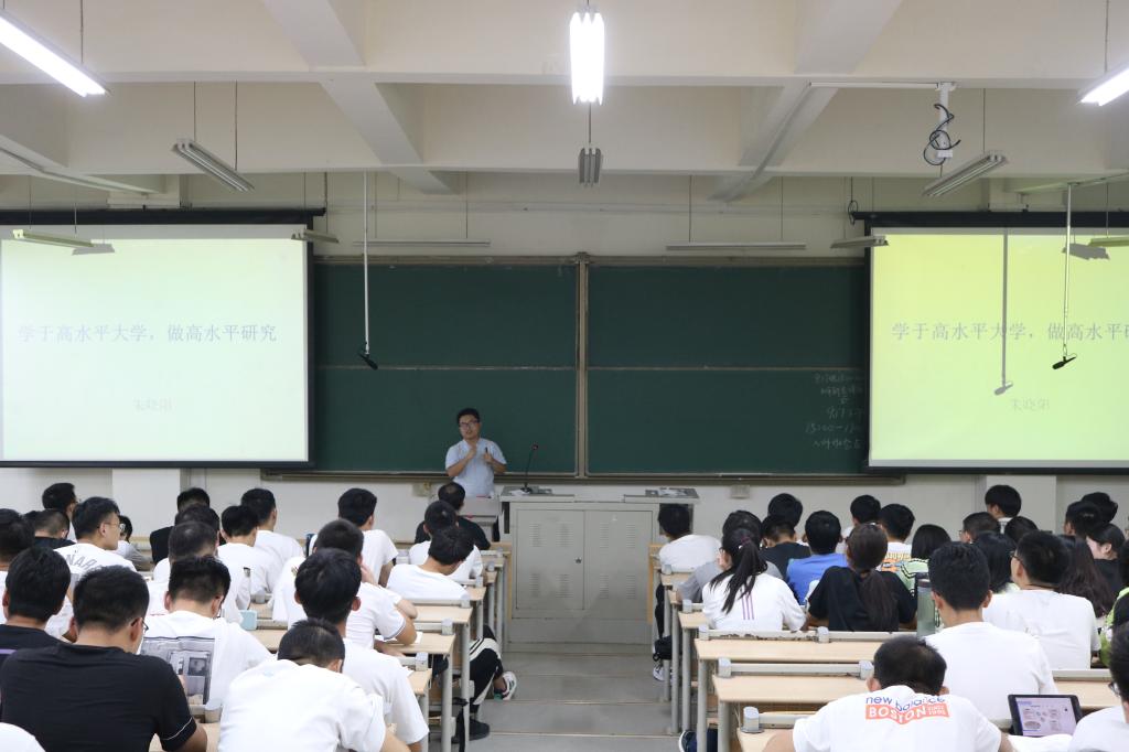 随后,朱晓阳老师做了题为《学于高水平大学,做高水平研究》的报告,朱老师为新生细致地讲解了研究生硕/博生涯学术规划,着重强调了科研规范和学术底线问题,并通过实例向同学们展示了科研舞弊的严重性。朱老师为同学们分享了科学研究技巧以及如何升华实验研究成果。在提问环节,朱老师就如何写一篇高质量的综述论文这一问题,对新生的问题进行了细致的回答,学生们获益匪浅。
