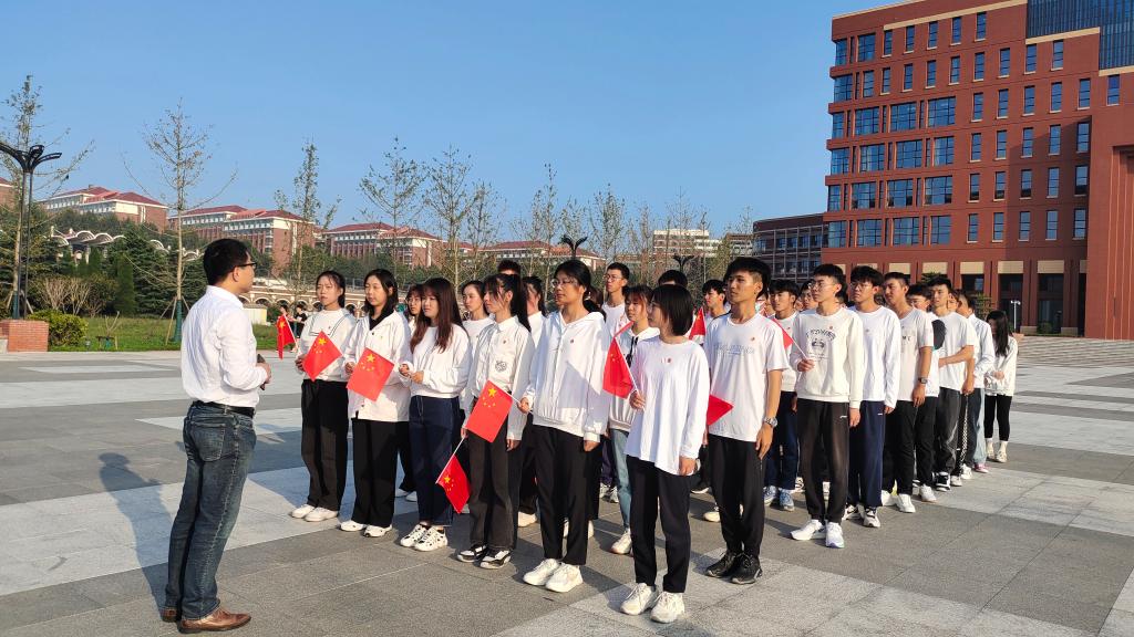 百年峥嵘岁月,恰是风华正茂。为庆祝中华人民共和国成立72周年,深刻缅怀每一个为国捐躯的烈士,厚植青年学生爱党爱国的情怀,9月30日烈士纪念日当天,PP电子游戏网站组织“青马学员”60余人齐聚礼贤广场,参加学校举行的庆祝中华人民共和国成立72周年升国旗仪式。之后随即开展现场教学,学院团委书记王成带领“青马学员”同上一堂简短而又新颖的国旗下的思政课,礼献国庆。