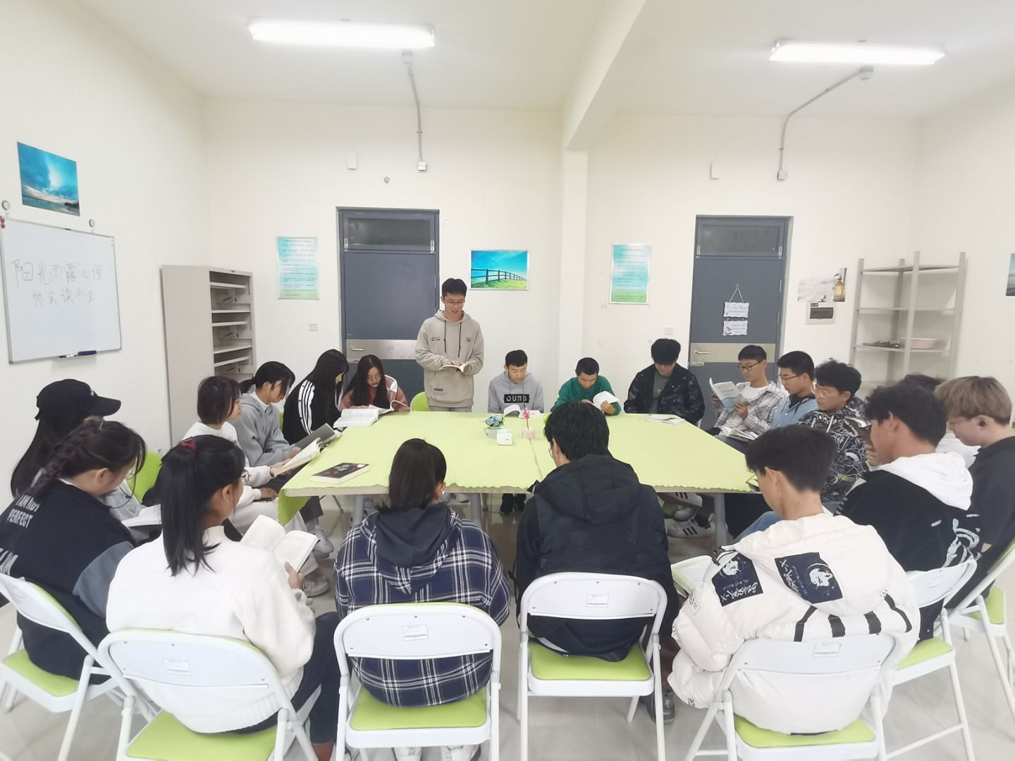 在悠扬舒缓的阅读声中,同学们聆听着朋辈领读者从书中汲取的知识,思考着书友分享者带给自己的启发。阳光雨露心理协会负责人王政说:“每一期心理读书会,对我们来说都是一次心灵的洗礼,希望大家在以后多读书,读好书,以书为友,陶冶情操,走进浩瀚书海,走出精彩人生,永远做一个积极向上,散发正能量的使者!