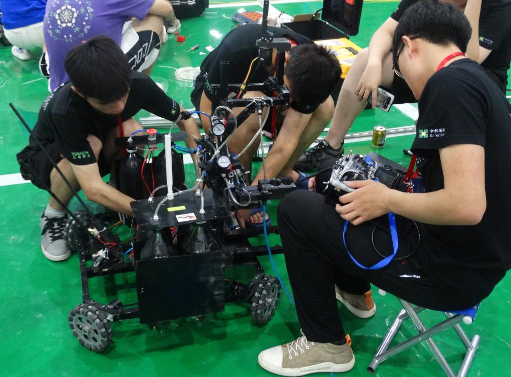 争分夺秒攀高峰。一年一赛,压力与挑战并存。据了解,组委会对Robocon 2022的比赛规则进行了较大改动,这给参赛团队备赛带来了很大难度。“有困难,我们一起想办法”,指导老师经常这样跟学生们说。3月份以来,受疫情影响,制作机器人的材料常常“供不应求”,团队成员集思广益,或自主设计进行3D打印,或把之前的材料“变废为宝”,拆卸、加工、再利用,确保工作进度如期进行。在备赛初期,理论设计与实操模型并不完成贴合,老师们克服无法线下“面对面”指导的困难,把微信群变成“会议室”,积极协调各项资源,带领学生一遍遍优化设计方案,一次次测试结构功能,认真修改每一个细节,确保结构功能最优化。队员们主动加班加点、废寝忘食,除上课时间外,其他空闲时间全部泡在实验室,有时候为了等待数据,甚至睡在了实验室。