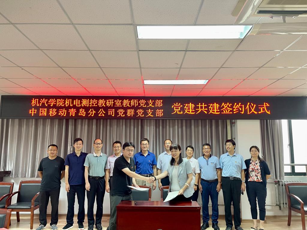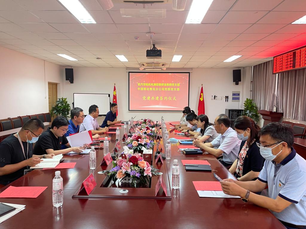 为深入落实新时代党的建设总要求,充分发挥基层党支部的主体作用,激发党员活力,实现党建引领,促进校企合作、产学合作、融合发展,7月14日下午,PP电子游戏网站机电测控教研室教师党支部与中国移动通信集团山东有限公司青岛分公司党群工作部党支部在现代教育中心210会议室举行校企党建共建签约仪式。学院党委书记李忠晓主持仪式。