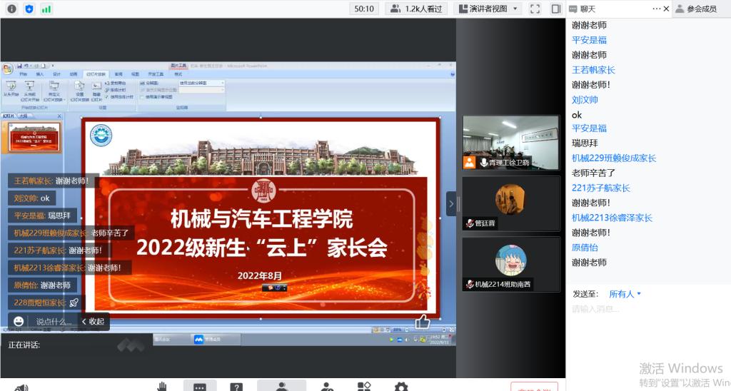 家校共育,开展“云上”新生家长会。为了让新生家长更全面地了解学校、学院情况,促进家校教育协调发展,形成共育合力,8月31日晚学院通过腾讯研讨会开展“云上”新生家长会,1000多名新生家长参加。学院团委书记王成代表学院对2022级全体新生和家长表示热烈欢迎并全面介绍介绍了学校、学院的相关政策、学科建设、专业设置及考研就业等情况,希望同学们在四年大学生活里能够学有所识、学有所获、学有所成。随后新生辅导员围绕疫情防控、大学生日常管理、心理健康教育、安全教育等方面进行重点介绍,并结合历年学生的成长成才情况,就学生在大学生活中常见的问题作了说明。互动环节中,辅导员们耐心解答学生家长的困惑,建立起了家长同学校的良性互动,对帮助新生家长正确认识和了解孩子的大学生涯,强化家校共育的理念起到了良好的推动作用。