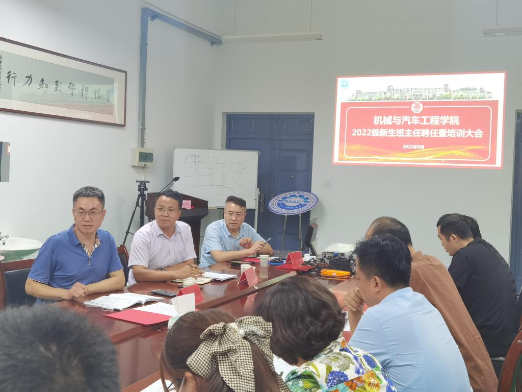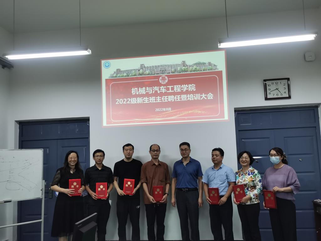 引领遵循,开展新生班主任聘任暨培训大会。8月31日,在汽车实验楼408会议室召开了2022级新生班主任聘任暨培训大会,PP电子游戏网站党委书记李忠晓、学生工作处副处长王振、全体新生班主任及新生辅导员参加了会议,会议由学院党委副书记董虎主持。会上,董虎宣读了2022级班主任名单并向班主任传达了新生入学报到、新生入学教育相关工作安排;李忠晓书记为2022级新生班主任颁发聘书;王振副处长结合多年班主任工作经验、辅导案例围绕如何增强班级凝聚力、如何培养学生骨干队伍、如何做学生思想上的引路人、如何成为学生的贴心人等方面进行经验分享。他表示,班主任要牢记立德树人的根本任务,提高政治站位,用真心、细心、热心、耐心做好学生教育管理服务工作,努力做学生成长的引路者、陪伴者、助力者。李忠晓书记对班主任提出了三点希望:一是结合新时代学生思想实际,注重加强思想政治教育和咨询服务,帮助新生扣好人生第一粒扣子;二是发挥专业引领作用,坚持加强学风建设,积极创建优良学风班,推进校园精神文明建设。三是加强沟通协调,深化家校联系,争做大学生健康成长的指导者和引路人。他表示,辅导员、班主任是学生学习和生活的领航者、帮助者,要在实际工作中切实做到“用心”、“用情”、“用智”。
