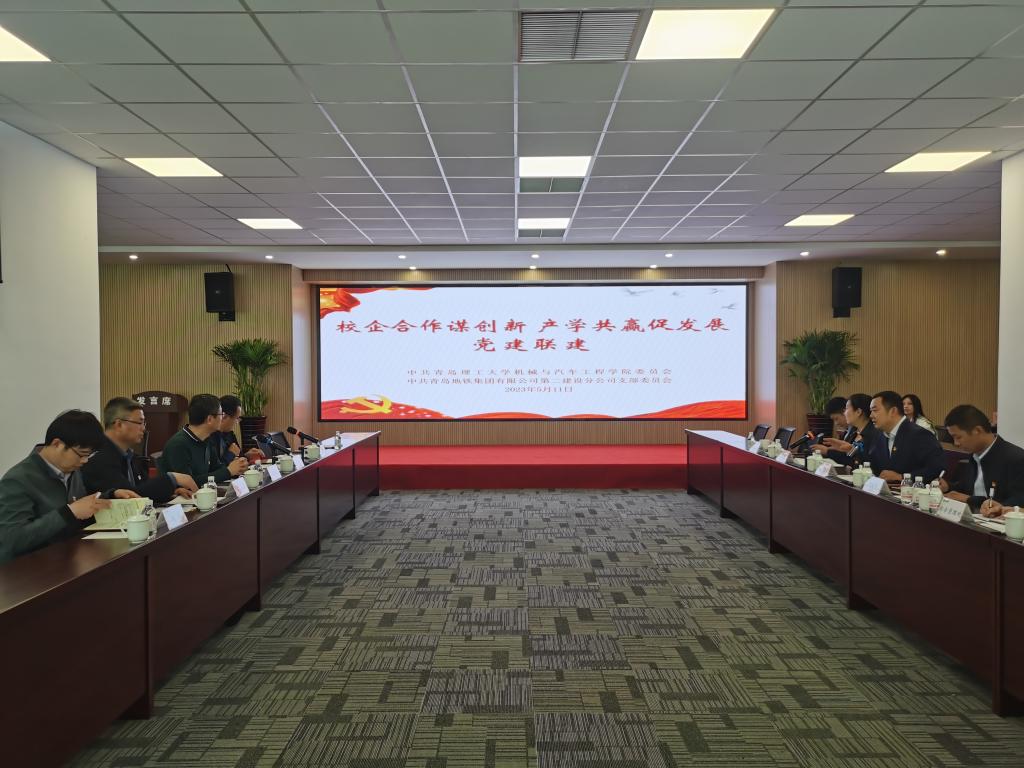 青岛地铁集团第二建设分公司党支部书记、董事长徐振对李忠晓一行表示热烈欢迎。徐振详细介绍了公司发展历程、业务发展、支部建设等工作,表示希望以此次党建联盟共建为契机,开展校企深度合作,促进产学共同发展。李忠晓全面介绍了学院党建工作、人才培养、学术研究、社会服务等方面取得的成绩,并重点介绍了双方党建共建的“六联”工作机制,促进双方在理论学习、阵地建设、项目建设、产学研发展、创新研发、社会公益等方面协同资源,优势互补,实现双赢。最后,李忠晓和徐振代表共建双方签署了《校企合作谋创新,产学共赢促发展党建联盟协议书》。