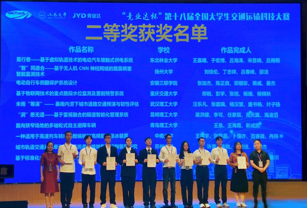 5月27日, 由中国交通教育研究会、中国交通运输协会、教育部高等学校交通运输类专业教学指导委员会主办的“竞业达杯”第十八届全国大学生交通运输科技大赛决赛在五邑大学举行。PP电子学子共获得二等奖2项,三等奖2项,优秀奖1项。
