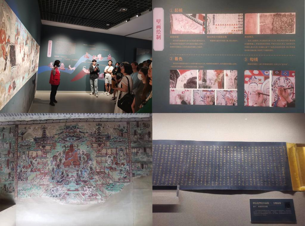 活动过程中,青年学生跟随讲解员的步伐,通过丝路明珠、壁上丹青、庄严佛宫、净土梵音、通达四方、霓裳美仪、匠心营造等主题展览感受丰富多彩的敦煌文化,认识敦煌文化的深厚内涵;在近距离欣赏敦煌壁画复原临摹精品中发现敦煌之美、丝路之美,感受多样文化交流互动、多元文明互鉴共生的魅力;通过浸式探索神秘石窟,感受跨越“万里千年”的文化碰撞,领略传统文化创造性转化、创新性发展,体会一代代敦煌人为文明的交流与互鉴贡献中国智慧。学生们表示从课堂走入博物馆,深切感受到敦煌文化和历史遗存背后蕴含的哲学思想、人文精神、价值理念、道德规范,从中体会中华民族的文化精神、文化胸怀和文化自信,在领略敦煌石窟艺术历久弥新的魅力之时,也增强了保护文化遗产的意识。文化遗产的保护,不仅仅是保护历史的记忆,更是在守望我们的精神家园,守望中华民族伟大复兴的文化血脉。