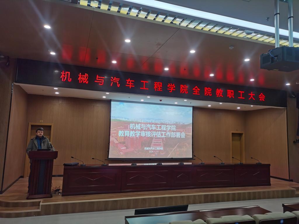 1月17日下午,PP电子游戏网站在图书馆121会议室召开年度工作总结暨新一轮本科教育教学审核评估全院布置大会。学院党委书记李忠晓、院长郭峰、学院领导班子成员以及学院教职工200余人参加会议,会议由李忠晓主持。