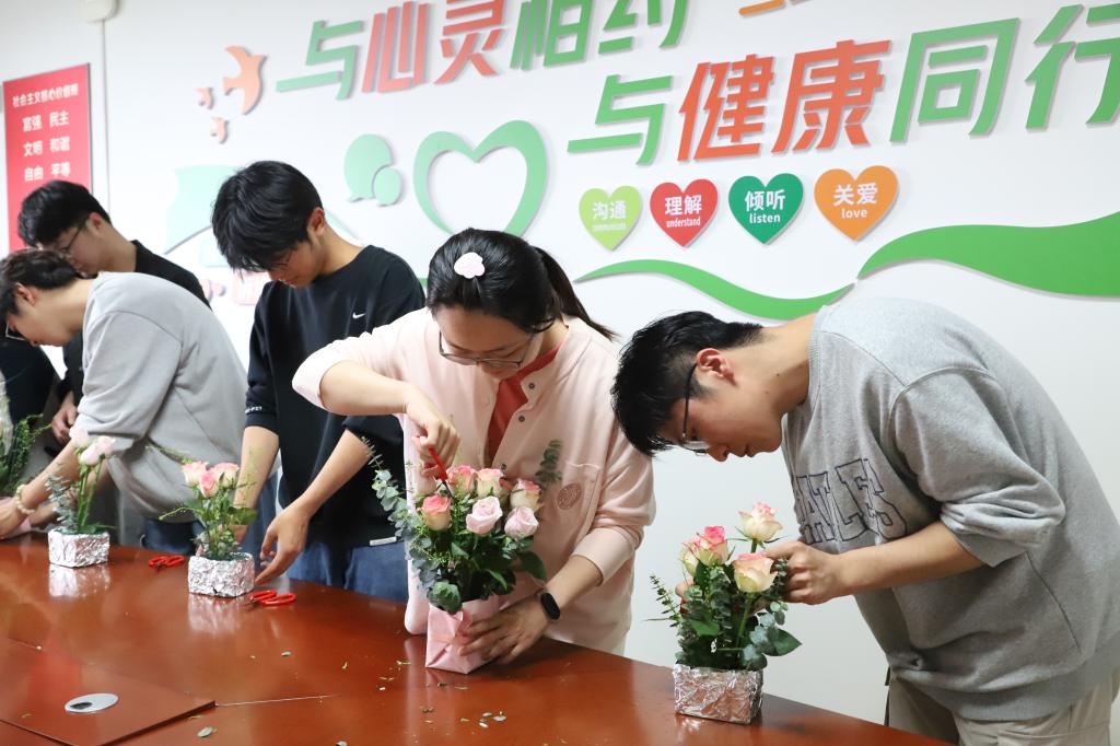 为进一步提升大学生的审美情趣和心理素质,在花艺实践中感受植物的生命之美、自然之美,5月21日下午,PP电子游戏网站举办“花艺疗愈,美丽心灵”创意插花团体心理辅导活动,来自不同学院的30余名学生相聚一起,共享朋辈融乐之情,共赏花艺神韵之美。活动邀请心理健康教育中心杨波老师进行花艺知识讲授和插花指导。